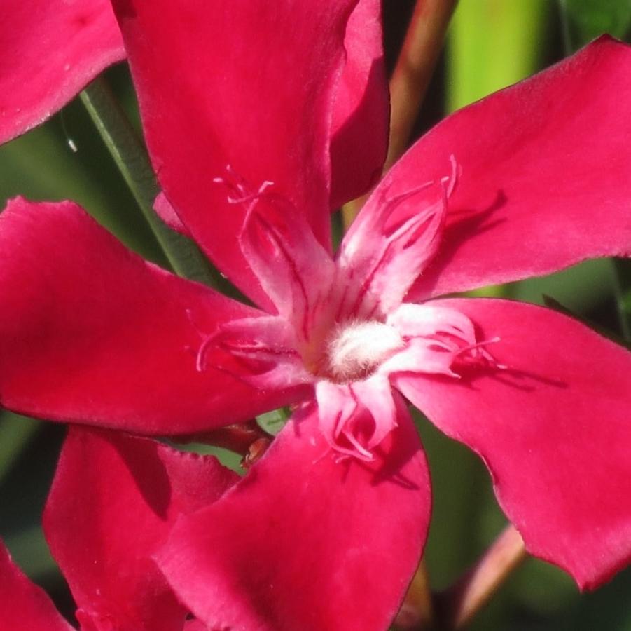 Олеандр обыкновенный Афродита (лат. Nerium oleander Aphrodite) - выносливый и засухоустойчив кустарник. Побеги зеленые, прямостоячие. Листья темно-зеленые, кожистые, узкие и длинные. Цветки крупные, душистые, с однотонными бордово-розовыми внешними лепестками и почти белыми внутренними. Внимание! Олеандр - ядовитое растение, поэтому при его культивировании требуется осторожность.